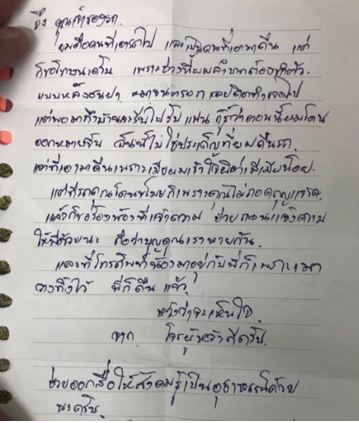 ពេលប៉ូលីសពិនិត្យមើល ស្រាប់តែឃើញសំបុត្រមួយច្បាប់សៀតនៅកែបម៉ូតូ ដោយសរសេរថា «ជូនចំពោះម្ចាស់ម៉ូតូ ខ្ញុំគឺជាអ្នកយកម៉ូតូទៅ ហើយក៏ជាអ្នកយកមកសងវិញដែរ តែខ្ញុំក៏សុំទោស ព្រោះតែមួយរយៈនេះខ្ញុំមានការលំបាកត្រូវធ្វើបែបនេះ ដូចជឆ្កែទាល់ច្រកចឹង ។ពេលដែលធ្វើទោហើយ ពេលមកដល់ផ្ទះទៅទទួលប្រពន្ធ ទើបបានដឹងថាខ្លួនឯងត្រូវប្រកាសចាប់ខ្លួន នេះក៏មិនមែនជាមូលហេតុដែលខ្ញុំយកម៉ូតូមកសងដែរ ខ្ញុំយកមកសងព្រោះតែប្រព្នធខ្ញុំយល់ច្រលំថាខ្ញុំមានប្រពន្ថចុង ហើយម៉ូតូនេះត្រូវខ្ញុំលួចវាព្រោះតែមិនដកសោរចេញពីម៉ូតូ ។ខ្ញុំសុំអង្វរផងចុះ ប្អូនដែលដាក់ពាក្យបណ្ដឹងសូមដកពាក្យបណ្ដឹងផង គិតថាធ្វបុណ្យអោយរួចគ្នាចុះ ។រីឯរឿងទូរស័ព្ទដែលមកនៅនឹងខ្ញុំនោះ ព្រោះតែុកចោលផ្ដេសផ្ដាស តែខ្ញុំក៏អោយវិញហើយដែរ សង្ឃឹមថានឹងយល់ចិត្ត ពីខ្ញុំចោរចិត្តល្អ ជួយផ្សព្វផ្សាយអោយសង្គមបានដឹងជាឧទាហណ៍ផងណា »