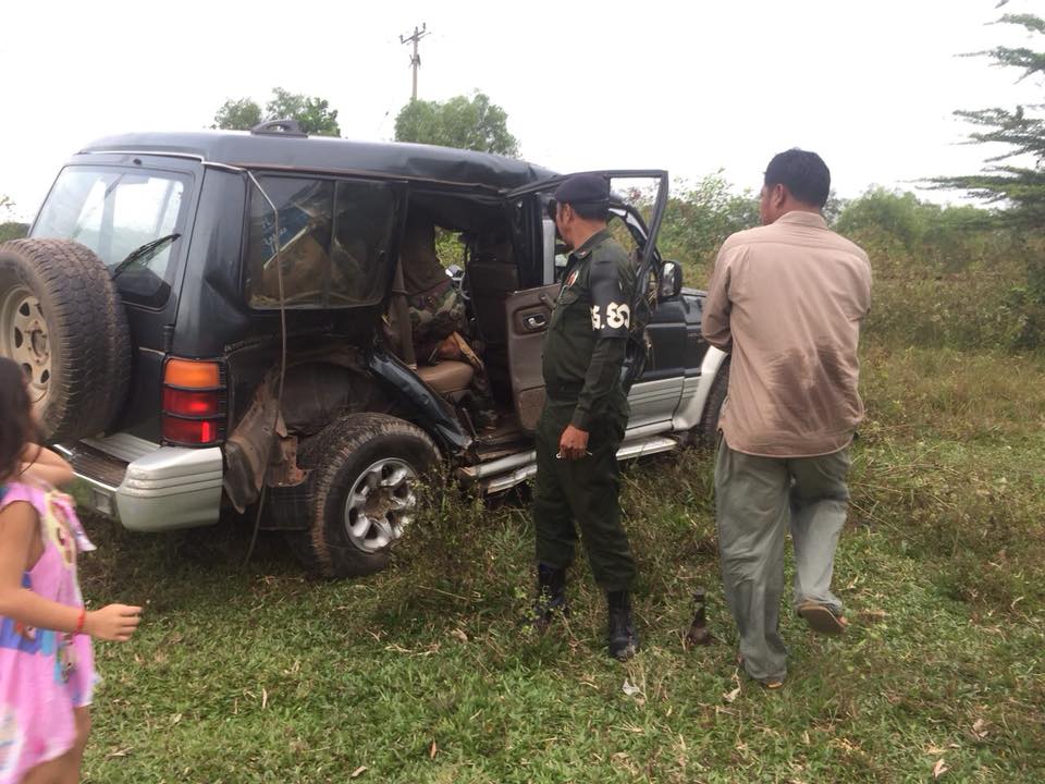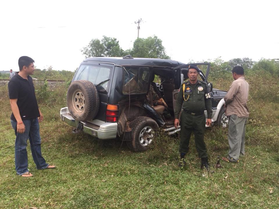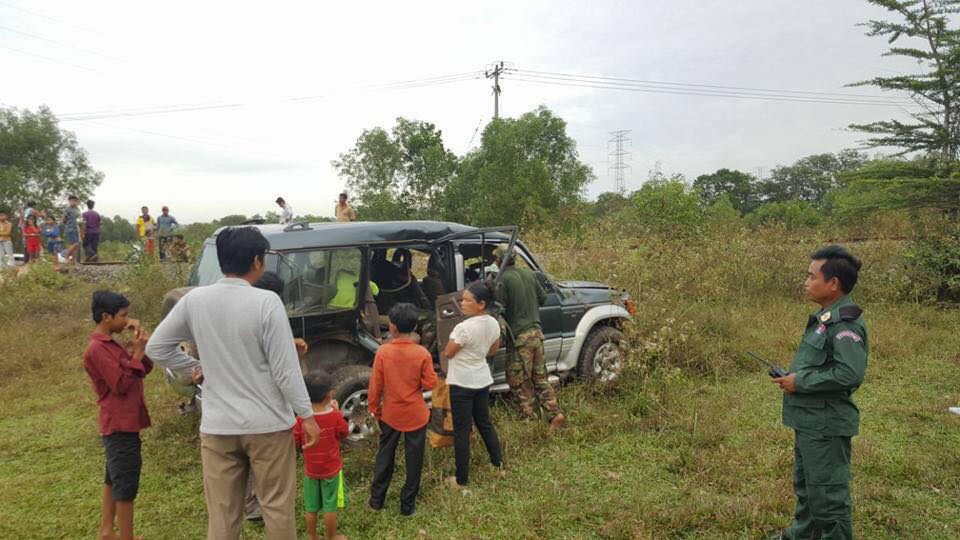 រថយន្ដម៉ាក MITSUBISHI MONTERO ពណ៍ស្លែ ផ្លាកលេខ ភ្នំពេញ 2S 3298 បើកបរដោយឈ្មោះ សេង ភ័ណ្ឌ ភេទប្រុស អាយុ ៥៩ឆ្នាំ ជាមន្ត្រីយោធាស្រុកស្ទឹងហាវ មានទីលំនៅភូមិ៤ឃុំទំនប់រលកស្រុកស្ទឹងហាវ ខេត្តព្រះសីហនុ ។ បើតាមសមត្ថកិច្ចអះអាងថា ហេតុការណ៍នេះ កើតឡើងនៅពេលរថយន្ដបើកឆ្លងផ្លូវរថភ្លើងដើម្បីចូលទៅទីបញ្ជាការតំបន់សឹករងស្រុកស្ទឹងហាវ ចំពេលរថភ្លើងមានទិសដៅពីខេត្តព្រះសីហនុទៅភ្នំពេញបើកមកដល់ រថភ្លើងក៍បុកចំពីក្រោយផ្នែកខាងស្ដាំរថយន្តបណ្ដាលអោយរថយន្តក្រឡាប់ផ្ងាជើង បណ្តាលអោយមន្ត្រីយោធាជាអ្នកបើកបរ រថយន្តរងរបួសត្រូវបានក្រុមគ្រួសារបញ្ចូនទៅព្យាបាល នៅមណ្ឌលសុខភាពស្រុកស្ទឹងហាវ ៕