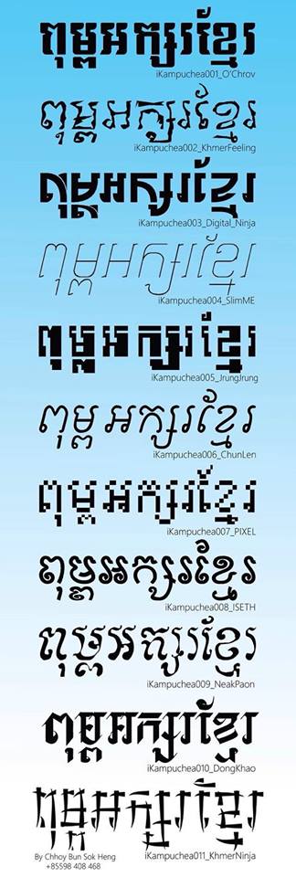 Facebook ៖ ស្ថិតក្នុងស្ថានភាពខ្វះខាតសំភារះប្រើប្រាស់ ក្រុមរចនាពុម្ពអក្សរខ្មែរ លោក Chhoy Bun Sok Heng បានចេញជាវីដេអូក្លីបមួយ សំរាប់ស្វែងរកជំនួយក្នុងការទិញ កំព្យូរទ័រមួយគ្រឿងសំរាប់ប្រើប្រាស់ក្នុងការរចនាពុម្ពអក្សរខ្មែរផ្សេងៗ ដែលនៅសល់ ពិសេសពុម្ពអក្សរខ្មែរ ត្រកូល iKampuchea ដែលនៅសល់ជាង ១០+ មិនទាន់ធ្វើរួចរាល់។