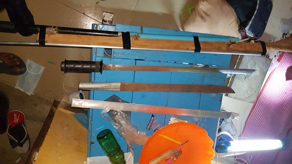 ក្រុមអ្នកលេង បងតូចបងធំប្រចាំភូមិទាំង៤នាក់ ស្រីម្នាក់ខាងលើ ប្រដាប់ដោយដាវសាំម៉ូរ៉ៃ តែងតែបង្កអសន្តិសុខក្នុងមូលដ្ឋាន ប្រមូលផ្តុំពពាក់ពពូនប្រើប្រាស់ ជួញដូរថ្នាំញៀន ហើយក្រោយពីមានសេចក្តី រាយការណ៍ ពីបងប្អូនប្រជាពលរដ្ឋ ទើបកម្លាំងនគរបាលអធិការដ្ឋានខណ្ឌរួមជាមួយកម្លាំងប៉ុស្តិ៍ ល្បាតក្នុងមូលដ្ឋានប្រទះជួបក្រុមអ្នកលេងខាងលើ ឃាត់ត្រួតពិនិត្យ រកឃើញដាវចំនួន២ដើម និងថ្នាំញៀនចំនួន៩កញ្ចប់ ដែលជនសង្ស័យលាក់ទុកនឹងខ្លួន ទើបឈានដល់ឃាត់ខ្លួនតែម្តង ។