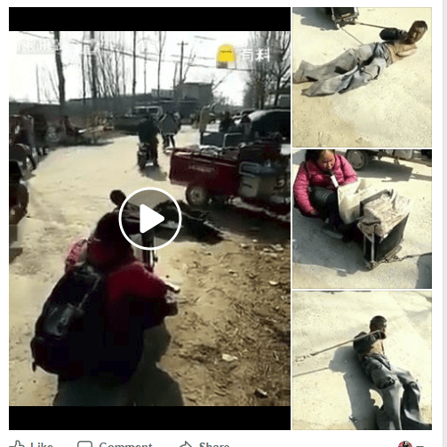 ប្រទេសចិន៖ដូចជាករណីមានបុរសនឹងស្រ្តីចំណាស់ពីនាក់ដែរបុរសនោះខំប្រមៀលខ្លូនអូសស្រ្តីដែលខំច្រៀងនៅលើរទះរបស់ពួកគាត់ដើម្បីអោយគេអាណិតអាសូនឹងដាកើថវិកាបន្តិចបន្តួចគ្រាន់ចញ្ចឹមក្រពះដើម្បីរស់បន្តទៅមុខទៀត។