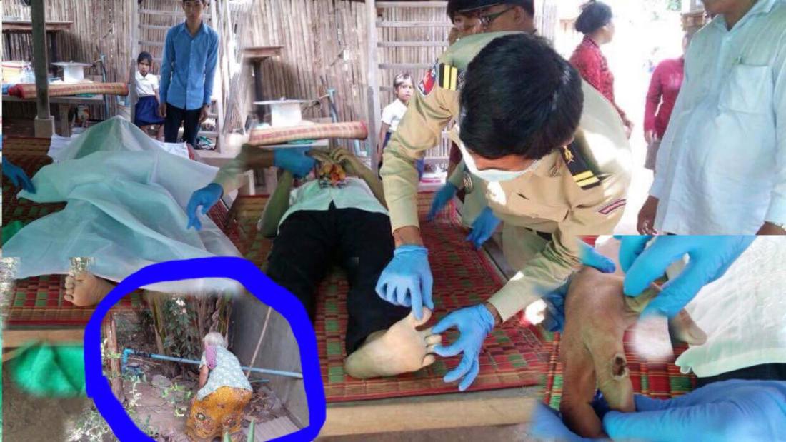 បន្ទាប់មកកម្លាំងជំនាញសហការជាមួយ ក្រុមប្រឹក្សាឃុំ មេភូមិគ្រូពេទ្យពិនិត្យឃើញថា៖ ជនរងគ្រោះមានស្នាមដាច់រលាត់ស្បែកម្រាមដៃខាងស្តាំមួយកន្លែងក្រៅពីនេះពុំមានស្លាកស្នាមអ្វីឡើយ ដូចនេះសមត្ថកិច្ចបានសន្និដ្ឋានជនរងគ្រោះពិតជាស្លាប់ដោយឆក់ខ្សែភ្លើងពិតប្រាកដមែន។