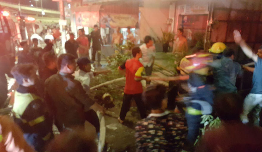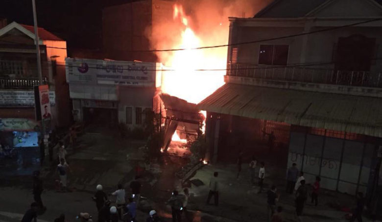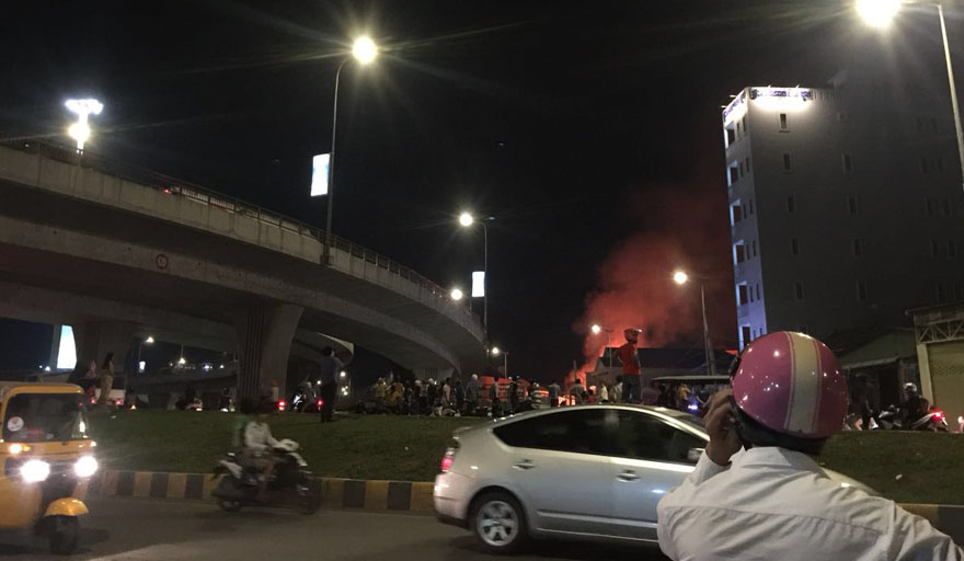 រាជធានីភ្នំពេញ ៖ (ព័ត៌មានបឋម) នៅខណៈនេះ អគ្គិភ័យកំពុងឆេះផ្ទះប្រជាពលរដ្ឋយ៉ាងសន្ធោសន្ធៅនៅក្បែរស្ពានអាកាសស្ទឹងមានជ័យ ស្ថិតក្នុងខណ្ឌមានជ័យ រាជធានីភ្នំពេញ។ ជាមួយគ្នានេះដែរសមត្ថកិច្ចកំពុងជួយអន្ដរាគមន៍បាញ់ពន្លត់ អគ្គិភ័យដែលកំពុងឆាបឆេះនេះ។ ជុំវិញបញ្ហាអគ្គិភ័យនេះ ពុំទាន់ដឹងពីមូលហេតុ ក៏ដូចជាការខូចខាតនៅឡើយទេ៕