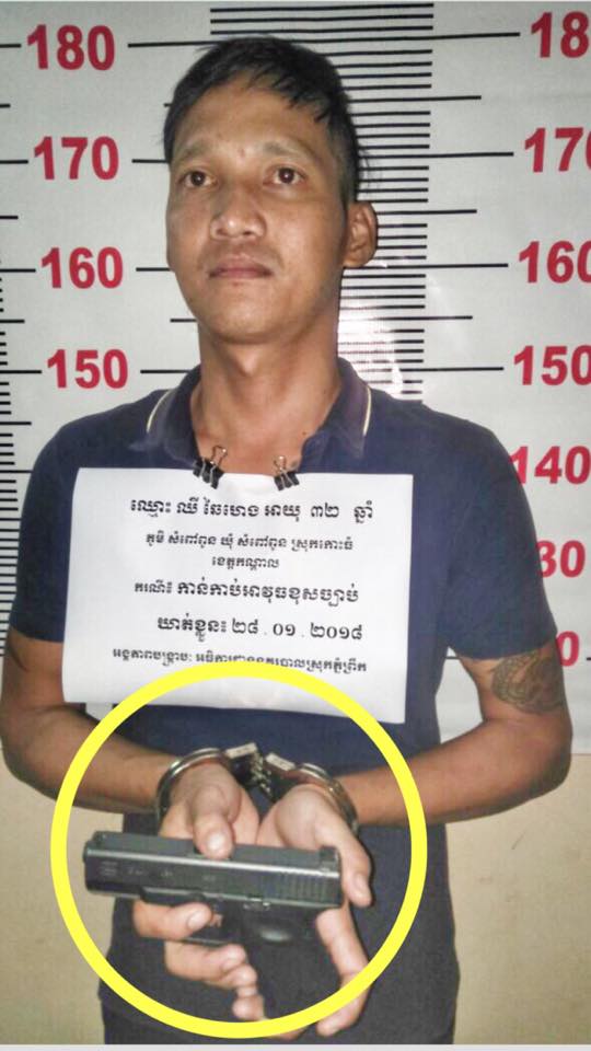 បើយោងតាមសម្តី លោកវរសេនីយ៍ទោ សុង សុភ័ក្របានមានប្រសាសថា៖ កាលពីយប់ថ្ងៃ អាទិត្យ ១២ កើត ខែមាឃ ឆ្នាំរកា នព្វសក័ ព.ស ២៥៦១ ត្រូវ នឹងថ្ងៃទី២៨ ខែមករា ឆ្នាំ២០១៨ លោកវរសេនីយ៍ទោ សុង សុភ័ក្រ្ត អធិការ នគរបាលស្រុកភ្នំព្រឹក បានដឹកនាំកម្លាំងនគរបា លធ្វើការត្រួតពិនិត្យអាវុធជាតិផ្ទុះតាមដងផ្លូវក្នុង ភូមិសាស្រ្តស្រុក និង អនុវត្តតាមមតិណែនាំជាប់ជាប្រចាំ របស់ឯកឧត្តម ឩត្តមសេនីយ៍ទោ អ៊ុច សុ ខុន ស្នងការនៃស្នងការដ្ឋាននគរបាលខេត្ត បាត់ដំបង ផងនោះបានប្រទះឃើញបុរស ចំនួន ០២ នាក់ដែលធ្វើដំណើរដោយម៉ូតូមួយគ្រឿង ហើយពេលត្រួតពិនិត្យបានឃើញអាវុធខ្លីចំនួន ០១ ដើម ម៉ាកឡុក បង់កាំភ្លើងចំនួន ០១ គ្រាប់កាំភ្លើងចំនួន ១៣ គ្រាប់ ដែលដាក់នៅក្រោម កែបម៉ូតូ ។