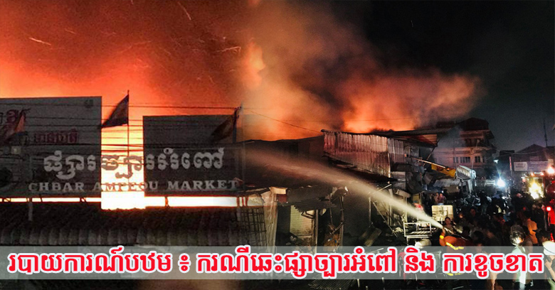 ផ្សារ ច្បារអំពៅ ត្រូវបាន អគ្គិភ័យ លេប ត្របាក់ ជាង ៨ ម៉ោង ពោលគឺ ឆាបឆេះ ឡើង នៅវេលា ម៉ោង ១១ និង ៤០ នាទី ថ្ងៃទី ១៥ ខែមីនា នៅ ចំណុច តូប ខាងកើត មួយកន្លែង នៅតាម ផ្លូវ ៣៦៣ កែង និង ផ្លូវ ៦២២ ដែល ស្ថិតក្នុង សង្កាត់ ច្បារអំពៅ ទី ២ខណ្ឌ ច្បារអំពៅ ៕