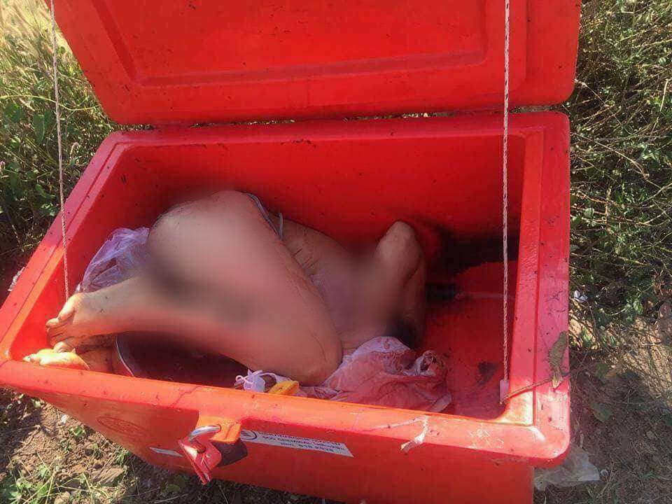 បើតាមការពិនិត្យជាក់ស្តែងបានឃើញមានដូចជា សាកសពមនុស្សស្រី អាយុចន្លោះពី២៨ ទៅ៣៥ ឆ្នាំ មានកម្ពស់១,៥០ ម៉ែត្រ ។ នៅក្នុងធុងទឹកកកដាក់សាកសពមានសម្ភារដូចជា មួកសុវត្ថិភាព១ កាបូបដៃ១ មានស៊ីមទូរស័ព្ទ១ កាំបិតចិត បន្លែចុងស្រួច ដងធ្វើពីឈើបាក់ផ្លែ១ អាវក្រៅពណ៌លឿង១ ខ្សែភ្លើងមានឌុយដាក់ក្នុងថង់ប្លាស្ទិក១ ខ្សែភ្លើងមានឌុយ១ អាវទ្រនាប់ពណ៌ផ្កាឈូក១ ដបទឹកបរិសុទ្ធ១ រ៉ូបពណ៌ផ្កាឈូក១ មានប្រឡាក់ឈាម កន្សែងពោះគោពណ៌.សឆ្នូត១ ម៉ាសពណ៌ខៀវ១ ស្បែកជើងស្រី១គូ ស្បៃដុសខ្លួន ១ ។