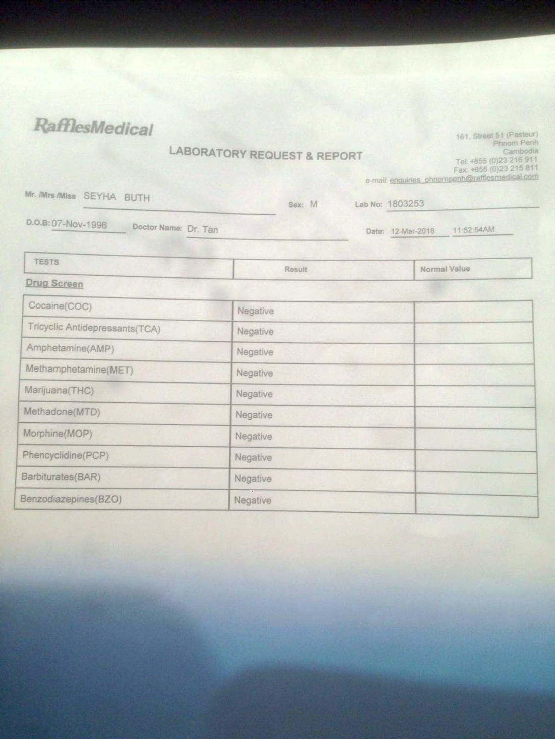 ពាក់ព័ន្ធនឹងរឿងនេះផងដែរ ដើម្បីបញ្ជាក់ថាខ្លួនស្អាតស្អំ លោក ប៊ុតសីហា បានសម្រេចចិត្តទៅពិនិត្យទឹកនោម ហើយក៏យកលទ្ធផលពិនិត្យទឹកនោម បង្ហាញជូនដល់អ្នកគាំទ្រ និងមហាជន ថាជាលទ្ធផល គឺលោកមិនមានពាក់ព័ន្ធនឹងសារធាតុញៀនឡើយ៕
