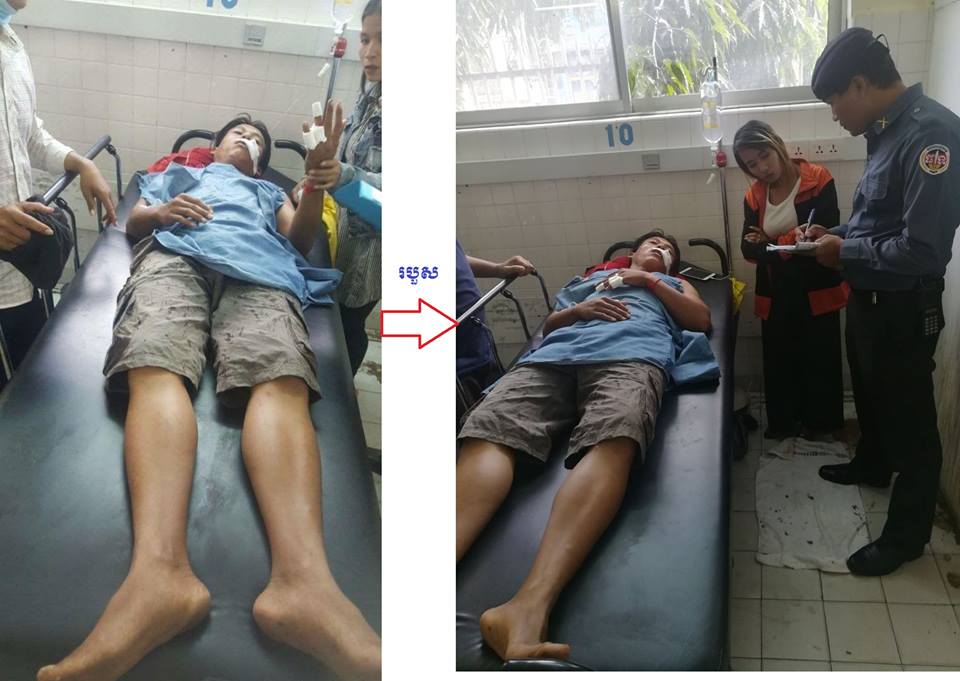 ២.ឈ្មោះ ប្រាក់ សុខុន ភេទ ប្រុស អាយុ ២៥ឆ្នាំ មុខរបរ រដ្ខាក រទឹកស្នាក់នៅ កន្លែងកើតហេតុខាងលើ (របួសមាត់ដេរ១០ថ្នេរ, ម្រាមដៃឆ្វេងដេរ១០ថ្នេ និង ម្រាមដៃស្តាំដេរ០៥ថ្នេរ)។