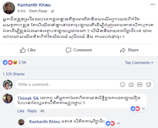 ឯកឧត្តម Kanharith Khieu បានថ្លែងតបទៅនឹងសំនួរមហាជនថា៖ អត់ទេ បើគិតតាមវិជ្ជាជីវៈ