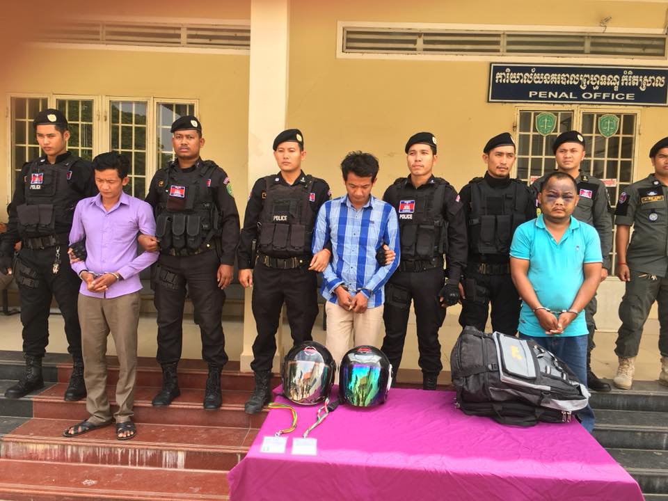 ខេត្តបាត់ដំបង៖ ដោយអនុវត្តន៍តាមការណែនាំ បញ្ជាផ្ទាល់ពីឯកឧត្តម ឧត្តមសេនីយ៍ទោ អ៊ុច សុខុន ស្នងការនគរបាលខេត្តបាត់ដំបង ក៏ដូចជាលោកឧត្តមសេនីយ៍ត្រី ជេត វណ្ណនី ស្នងការរងនគរបាលទទួលបន្ទុកផែនព្រហ្មទណ្ឌ ជាក់ស្ដែង ថ្ងៃព្រហស្បតិ៍ ៦ កើត ខែចេត្រ ឆ្នាំរកា នព្វស័ក ពុទ្ធសករាជ ២៥៦១ ត្រូវនឹង ថ្ងៃទី២២ ខែមីនា ឆ្នាំ២០១៨ វេលាម៉ោង១៦និង ៣០ នាទី នៅចំណុចក្រុមទី ១៨ ភូមិស្រះកែវ ឃុំកំពង់ព្រះ ស្រុកសង្កែ ខេត្តបាត់ដំបង លោកវរៈសេនីយ៍ត្រី ឈឿង គឹមសុង បានដឹកនាំ ក្រុមអន្តរាគមន៍ បង្ការ បង្ក្រាប ចុះប្រតិបត្តិការបង្ក្រាបករណីអំពើលួច ( ចោរកាច់សោរម៉ូតូ ) ១ករណី ឃាត់ខ្លួនបានជនសង្ស័យចំនួន៣ នាក់ ។