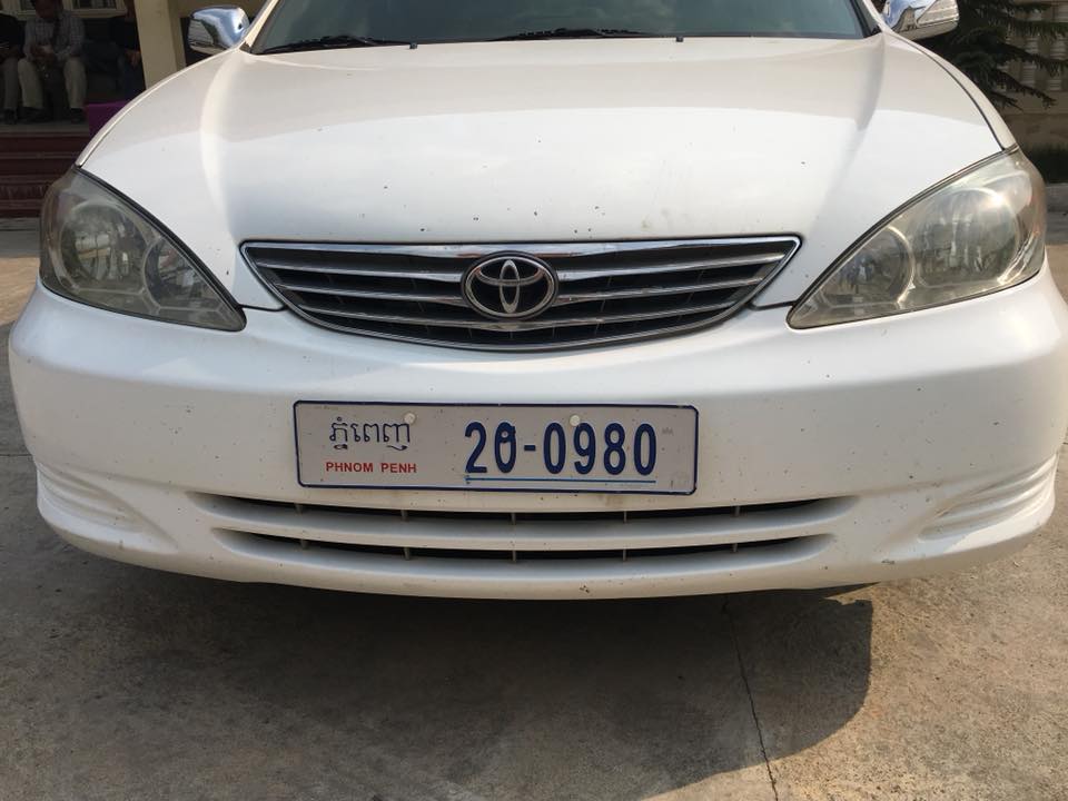– រថយន្តមួយគ្រឿងម៉ាកកាមរីបាឡែនពណ៌ ស ស៊េរីឆ្នាំ ២០០៣ ពាក់ស្លាកលេខ ភ្នំពេញ ២O ០៩៨០