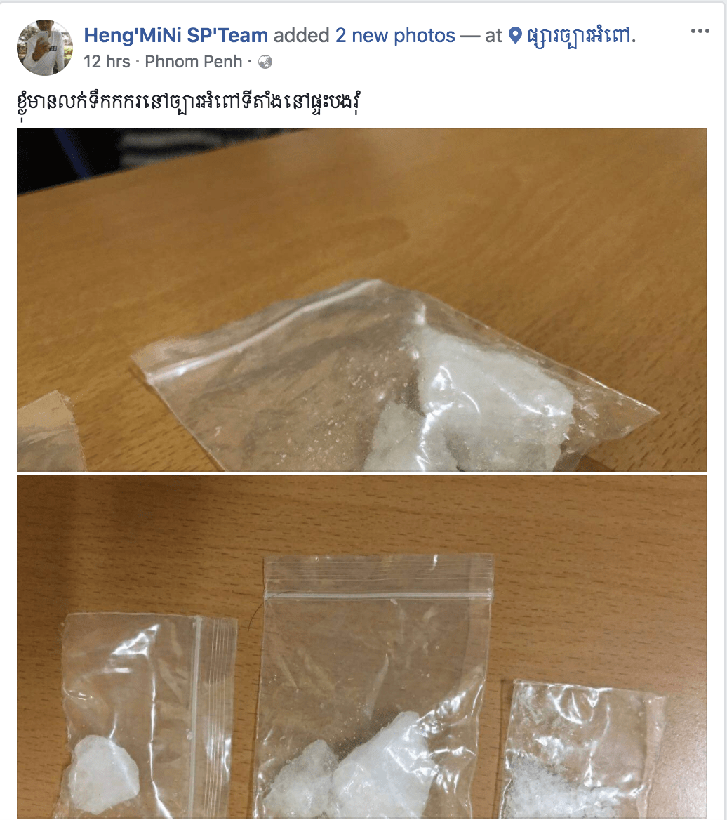ឥលូវយើងងាកមកមើលរឿងរាវស្រដៀងគ្នានេះដែរ ដោយកាលពីពេលថ្មីៗនេះ មានករណីថតរូបង្ហោះអួតតាមហ្វេសប៊ុកមួយទៀត ដែលករណីលើកនេះជាករណីលក់ថ្នាំញៀនវិញម្តង ។ យោងតាមម្ចាស់គណនីមួយបានបង្ហោះថា ”ខ្ងុំមានលក់ទឹកកករនៅច្បារអំពៅទីតាំងនៅផ្ទះបងរុំ” ។