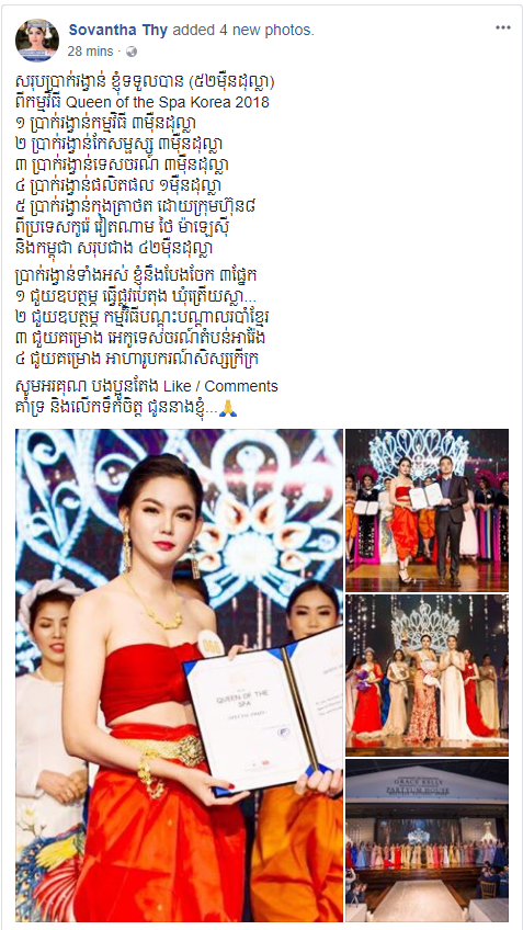 “សរុបប្រាក់រង្វាន់ ខ្ញុំទទួលបាន (៥២ម៉ឺនដុល្លា)ពីកម្មវិធី Queen of the Spa Korea 2018