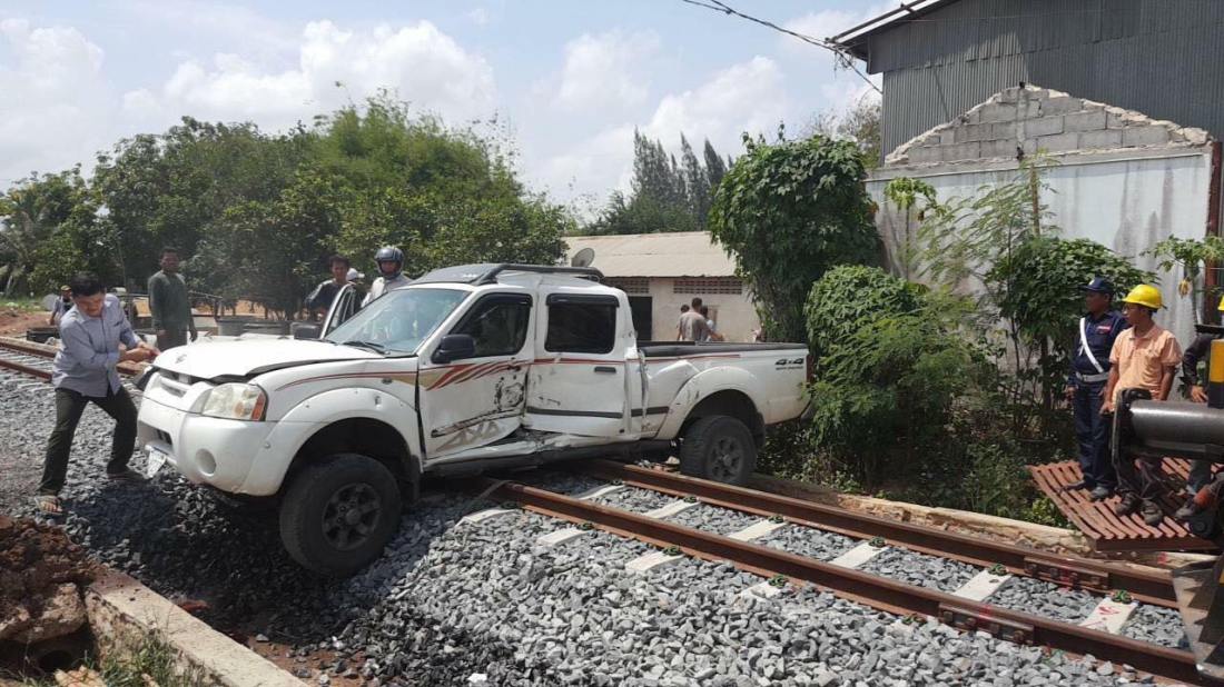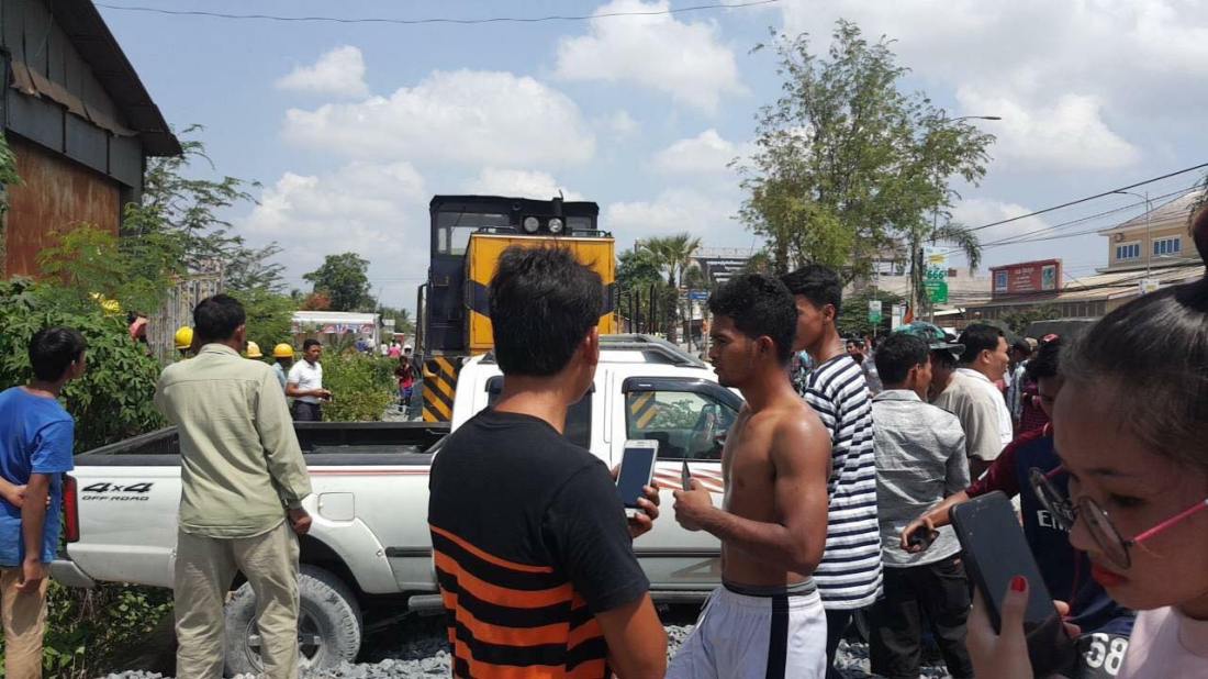 បើតាមសម្តីអ្នកនៅក្បែរនោះប្រាប់ថា៖ នៅទីលើផ្លូវដែកនិងផ្លូវលំបំបែកផ្លូវជាតិលេខ៥ ម្តុំឃ្លាំងស្តុកកៅស៊ូចាក់ថ្នល់និងសួនច្បារប៉ោយប៉ែតមានជ័យនោះ ស្រាប់តែមានសំលឡេងរថភ្លើងបើកលឺដូចរាល់ដង លុះមួយសន្ទុះក្រោយមក ក៍ស្រាប់តែមានកាភ្ញាក់ផ្អើលថាបានបុកជាមួយរថយន្តមួយគ្រឿងម៉ាកនីសាន់១បាំងកន្លះ ពាក់ស្លាកលេខភ្នំពេញ ២L ៨៧២៧ បានរងគ្រោះនិងបើកបរដោយឈ្មោះ ថា ភេទប្រុស អាយុប្រមាណជាង៤០ឆ្នាំ។