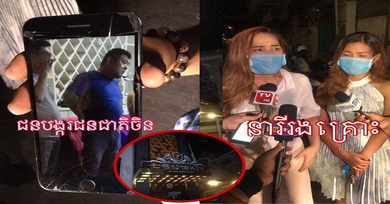ភ្នំពេញ៖ នារីពីនាក់បានរងនូវអំពើហឹង្សាពីបុរសជនជាតិចិនម្នាក់ ជាថៅកែហាងខារ៉ាអូខេដែលបង្ខំឲ្យនារី២នាក់នោះ ទៅអង្គុយជាមួយមិត្តភក្រ្ត័ខ្លួន តែនាងមិនព្រម ហេតុការណ៍បានកើតឡើងនៅវេលាម៉ោង១០៖៥០នាទីយប់ ត្រូវថ្ងៃទី២៣ ខែមេសា ឆ្នាំ២០១៨ នៅចំណុចមុខ KTV QI HAO GONG GOAN ជាប់ផ្សារបឹងត្របែកផ្លាហ្សា ស្ថិតក្នុងសង្កាត់បឹងត្របែក ខណ្ឌចំការមន រាជធានីភ្នំពេញ។