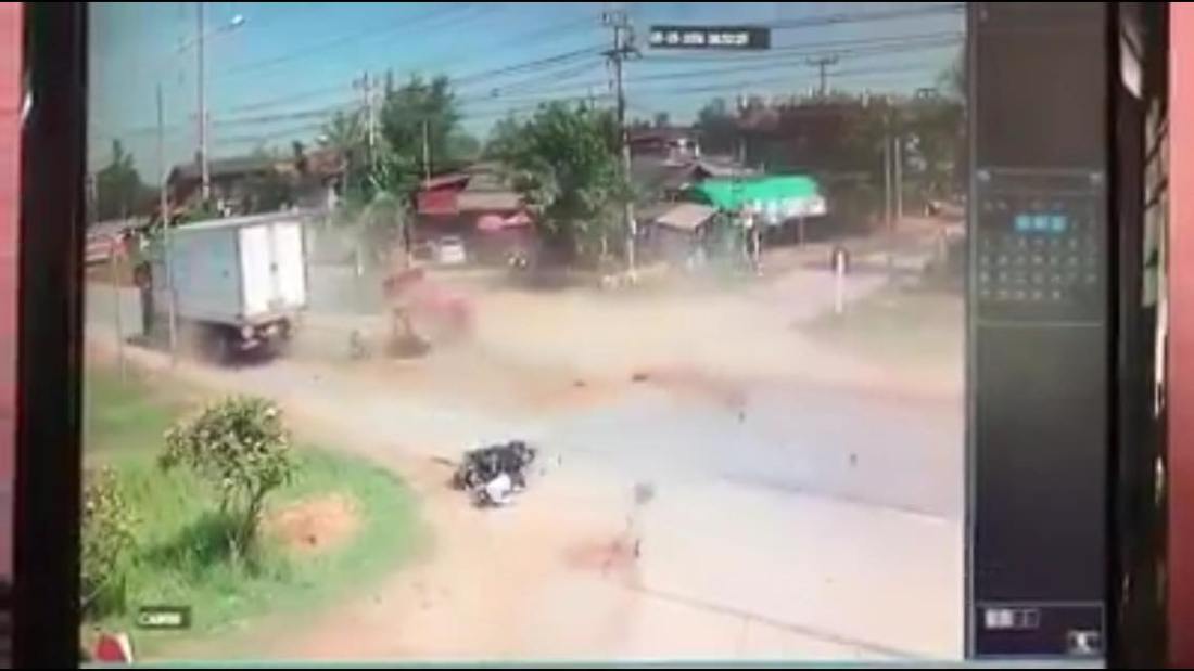ប្រទេសថៃ៖ បើយើងមើលនៅក្នុងវិដេអូនេះយើងឃើញថា គ្រោះថ្នាក់ពិតជានៅជុំវិញខ្លួនយើងមែន បើសិនជាយើងមានកាប្រុងប្រយ័ត្នទេនោះ យើងប្រាកដជាបាត់បង់ជីវិតតែមួយពព្រិចភ្នែកជាក់ជាពុំខាន ។