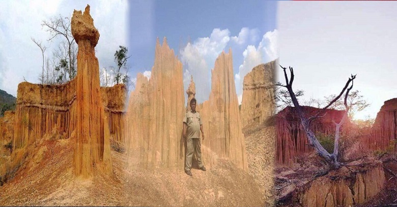 លោកបានបន្តថានៅទីនោះមានមានទស្សនីយ៍ភាពស្អាតខ្លាំងកម្របានឃើញមានដើមឈើតូចៗដុះតាមជំរៀលខ្ពង់រាបពណ៍ខៀវស្រង៉ាត់ អ្វីដែរគួរឲ្យភ្ញាក់ផ្អើលនោះដីដុះដែលកើតឡើងដោយសាទឹកហូរចេញមកពីលើកំពូលភ្នំនាៗបង្កើតបានជាទិដ្ធភាពដ៍ប្លែកប្រៀបដូចប្រាង្គប្រាសាទដូច្នោះដែរ ។