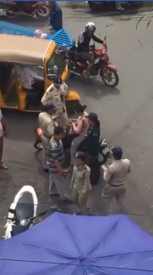 បើយោងតាមវីដេអូដែល គេបានចែកចាយលើបណ្តាញសង្គមហ្វេសប៊ុក ដោយក្នុងនោះគេឃើញថាប៉ូលីសមួយក្រុមបានស្ទាក់ចាប់ស្រ្តីម្នាក់ ដែលជិះម៉ូតូខុសច្បាប់ចរាចរណ៍នៅកែផ្សារអូឡាំពេជ្រ ខណៈពេលដែលស្រ្តីរូបនោះ បានព្យាយាមគះដៃប៉ូលីសចេញពីម៉ូតូបណ្តាលឲ្យជ្រុះទូរស័ព្ទដៃរបស់លោកពូប៉ូលីសទៅលើដីធ្វើឲ្យប៉ូលីសខឹងបានទះកំភ្លៀងស្រ្តីរូបនោះមួយដៃតែម្តង។
