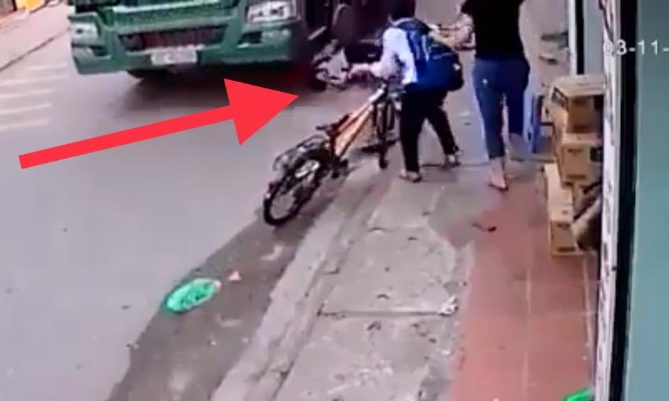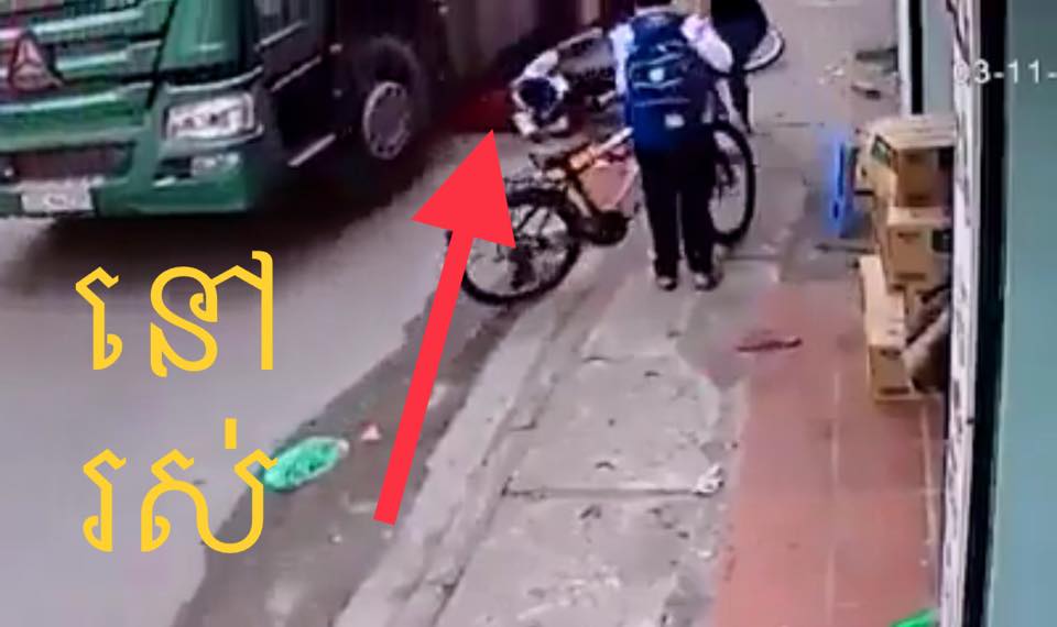 នៅក្នុងវិដេអូនេះដែរ យើងឃើញថា មានក្មេងសិស្សសាលា២នាក់ជិះកង់ផ្សេងគ្នា ហើយក៍បានរេចង្កូតដួលធ្លាក់ទៅលើថ្នល់ តែសំណាងមួយក្នុងមួយលានគ្រោះថ្នាក់ ! ហេងនោះហេង !