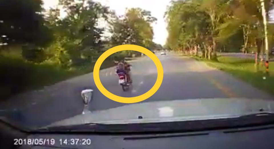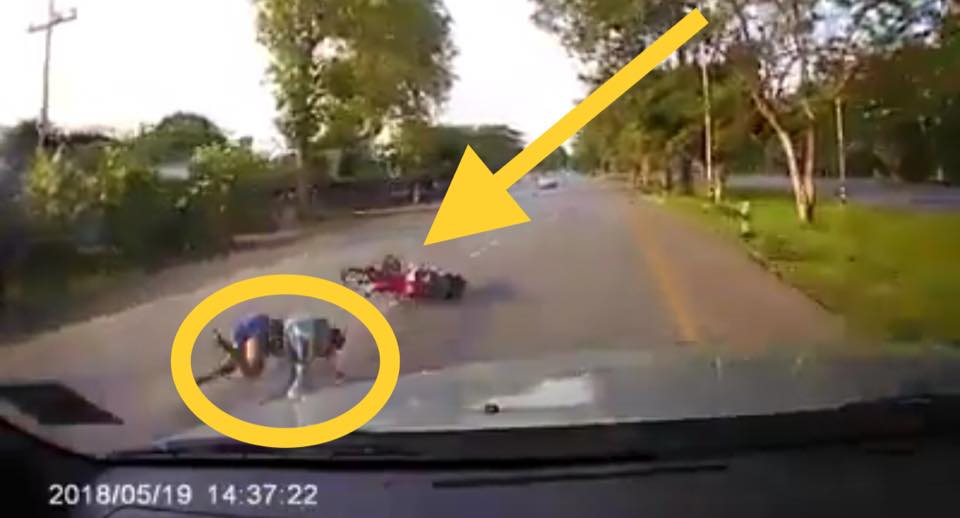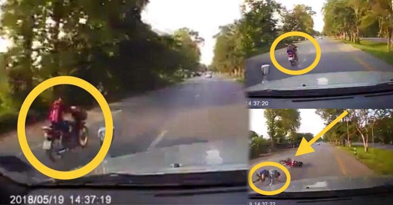 នៅក្នុងវិដេអូនេះដែរ មានក្មេងប្រុសម្នាក់ បានជិះម៉ូតូមួយគ្រឿងយ៉ាងលឿន តែដោយសារមិនអាចទប់នៅលំនឹងខ្យល់បានក៍រេចង្កូតដួលប្រកាច់ពេញថ្នល់ តែសំណាងហើយដែល