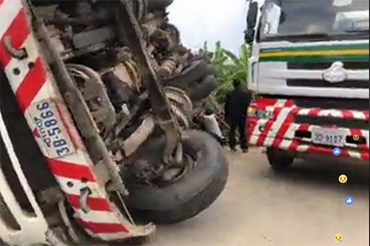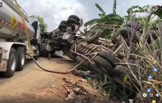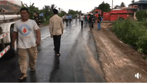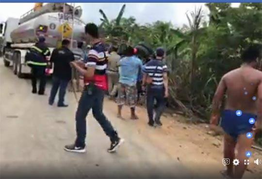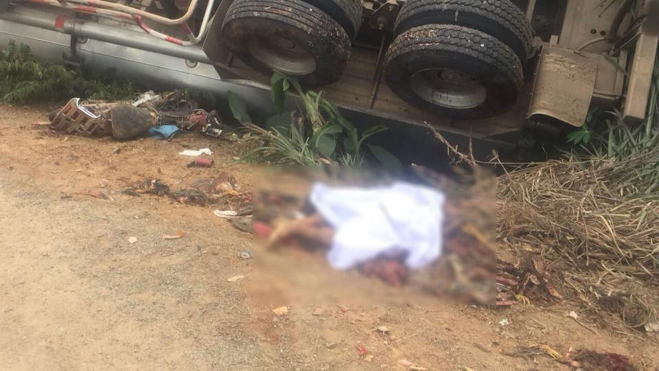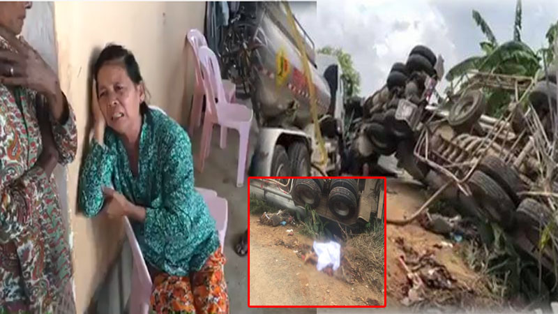 រថយន្តដឹក ប្រេងក្រុមហ៊ុនតេលាក្រឡាប់សង្កត់អ្នកជិះម៉ូតូដឹកមាន់ ស្លាប់យ៉ាងអាណោចអធម៌ ហើយក្រោយពេលកើតហេតុម្តាយបង្កើតរបស់ជនរងគ្រោះបានមកដល់ ហើយបានយំសោកបោកខ្លួនគួឲ្យអាសូរ