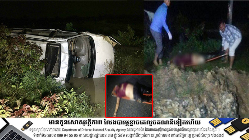 ភ្នំពេញ ៖ ហេតុការណ៍គ្រោះថ្នាក់ចរាចរណ៍ដ៍រន្ធត់នេះ បានកើតឡើងនៅវេលាម៉ោងប្រម៉ាណ ១និង៣៥នាទីរំលងអាធ្រាត្រ ឈានចូលថ្ងៃទី៣១ ខែឧសភា ឆ្នាំ២០១៨ នៅតាមបណ្ដោយផ្លូវទំនប់កប់ស្រូវ ក្នុងភូមិត្រពាំងវែង សង្កាត់គោករកា ខណ្ឌព្រែកព្នៅ ។