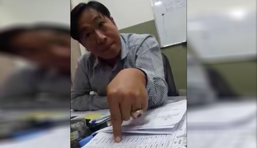 បើយើងមើលនៅវិដេអូនេះយើងឃើញថា ថ្នាក់លើរបស់បុគ្គលិករូបនោះបានហៅកូនចៅមកសួរហើយស្រែកគំហ៊កខ្លាំងៗ ដោយយើងមើលទៅហាក់បីដូចជាគ្មានវិជ្ជាជីវជាថ្នាក់លើរបស់គេសោះឡើយ មិនតែប៉ុណ្ណោះមិនព្រមស្ដាប់កាបកស្រាយរបស់បុគ្គលិកខ្លួនទេថែមទាំងបានជេប្រមាថ (ជេម្រាយ) បុគ្គលិកនោះថែមទៀតផង ។