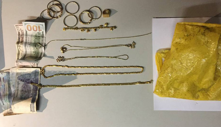 កម្លាំងជំនាញដោយសហការជាមួយកម្លាំងប៉ុស្តិ៍នគរបាលរដ្ឋបាលបន្ទាយដែក និងប៉ុស្តិ៍នគរបាលសំរោងធំ ចុះស្រាវជ្រាវឃាត់ខ្លួនជនសង្ស័យទាំងពីរ និងដកហូតវត្ថុតាងមួយចំនួន រួមមាន ខ្សែកចំនួន៥ខ្សែ, ខ្សែដៃ១ខ្សែ, ចិញ្ចៀនត្រា១វង់, កងដៃ៧កង, ប្រាក់ដុល្លារ១៥០ដុល្លារ, ប្រាក់រៀល១៤០.០០០៛(ដប់បួនម៉ឺនរៀល), ម៉ូតូ១គ្រឿងម៉ាក SUZUKI nex ពណ៌សលាយខ្មៅ ពាក់ស្លាកលេខ ភ្នំពេញ 1BO-7563 និងថង់ផ្លាស្ទិកមានដៃយួរពណ៌លឿង១ ហើយក៏បញ្ជូនទៅប៉ុស្តិ៍នគរបាលរដ្ឋបាលបន្ទាយដែក ដើម្បីសួរនាំតែម្ដង ៕