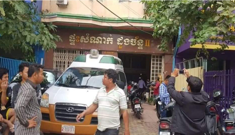 (ភ្នំពេញ) នារីម្នាក់ត្រូវបានម្ចាស់ផ្ទះសំណាក់ ដួងច័ន្ទ២ ប្រទះឃើញ ដេកស្លាប់នៅក្នុងបន្ទប់ ផ្ទះសំណាក់ ហេតុការណ៍នេះបានកើតឡើងកាលពីវេលាម៉ោង១ និង ៣០នាទីរសៀល ថ្ងៃទី១៤ខែសីហា ឆ្នាំ២០១៨ត្រង់ចំណុចផ្ទះសំណាក ដួងច័ន្ទ២ លេខ៥០២E និង៥០២F តាម បណ្ដោយផ្លូវព្រះមុនីវង្ស ស្ថិតក្នុងសង្កាត់ទន្លេបាសាក់ ខណ្ឌចំការមន រាជធានីភ្នំពេញ ។