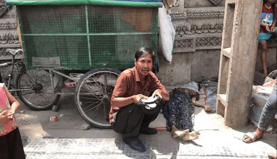 ( ភ្នំពេញ ) បុរស់វ័យចំណាស់ជាអ្នករើសអេតចាយម្នាក់បានបីសពប្រពន្ធរបស់ខ្លួនដើរជាច្រើនម៉ែត្រទាំងត្រដរខ្យល់ដើម្បីរកកន្លែងតម្កល់សពប្រពន្ធដែលស្លាប់ដោយសារជំងឺនៅចិញ្ចើមផ្លូវជាប់របងវត្តស្ទឹងមានជ័យ ។