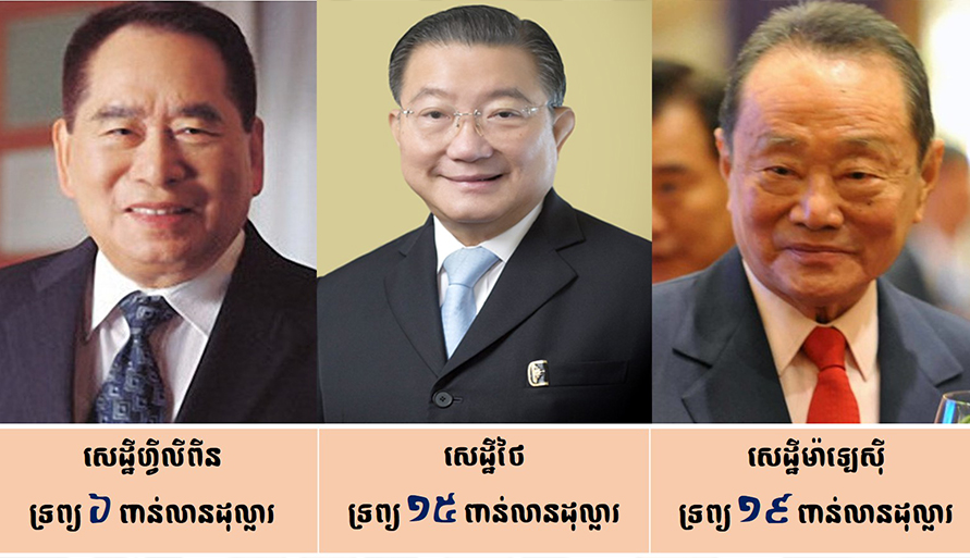 (ភ្នំពេញ) គេហទំព័រ prospects បានចុះផ្សាយពីមហាសេដ្ឋីចំនួន១០ មកពីតំបន់អាស៊ាន ដែលមានទ្រព្យសម្បត្តិមហាសាល។ តើនណាខ្លះជាមហាសេដ្ឋីនៅក្នុងតំបន់អាស៊ាននេះ ? ប្រភពចំណូលបានមកពីណាខ្លះ? ។