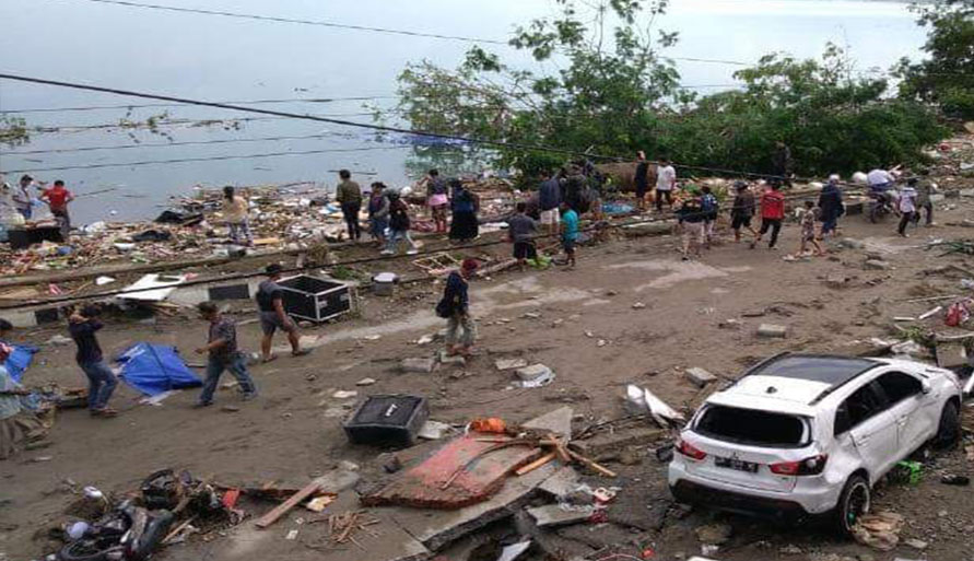 មនុស្សរាប់រយនាក់ បានប្រមូលផ្តុំគ្នា សម្រាប់ពិធីបុណ្យមួយ នៅលើឆ្នេរខ្សាច់របស់ទីក្រុង នៅពេលដែលជញ្ជាំងទឹក បានវាយលុកនៅលើឆ្នេរសមុទ្រ នៅថ្ងៃព្រហស្បតិ៍ ដោយបានបោកបក់ជាច្រើន ដល់ការស្លាប់របស់ពួកគេ និងបំផ្លាញអ្វីនៅលើផ្លូវរបស់វា។ ប្រធានាធិបតីឥណ្ឌូណេស៊ី លោក Joko Widodo គ្រោងនឹងធ្វើទស្សនកិច្ច ទៅកាន់មជ្ឈមណ្ឌលជម្លៀស នៅក្នុងទីក្រុងកាលពីថ្ងៃអាទិត្យ។