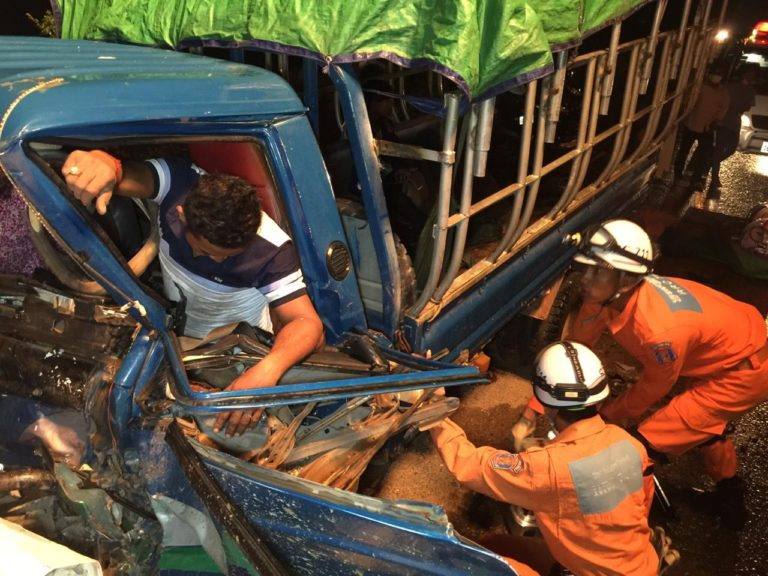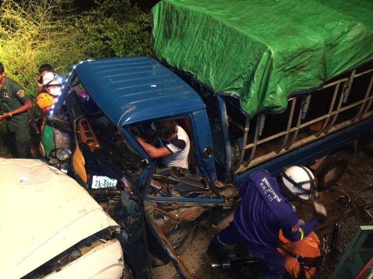 ជនរងគ្រោះទាំង៣នាក់ ដែលគៀបជាប់ក្នុងកាប៊ិន ត្រូវបានក្រុមសង្រ្គោះរបស់អង្គភាព៧១១ ជួយអន្តរាគមន៍ កាត់វះ រថយន្ត ដើម្បីយកជនរងគ្រោះចេញ ដឹកបញ្ជូនទៅមន្ទីរពេទ្យព្រះកុសុមៈ ។