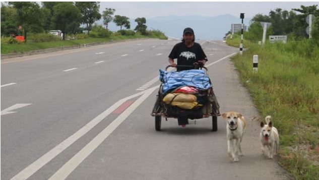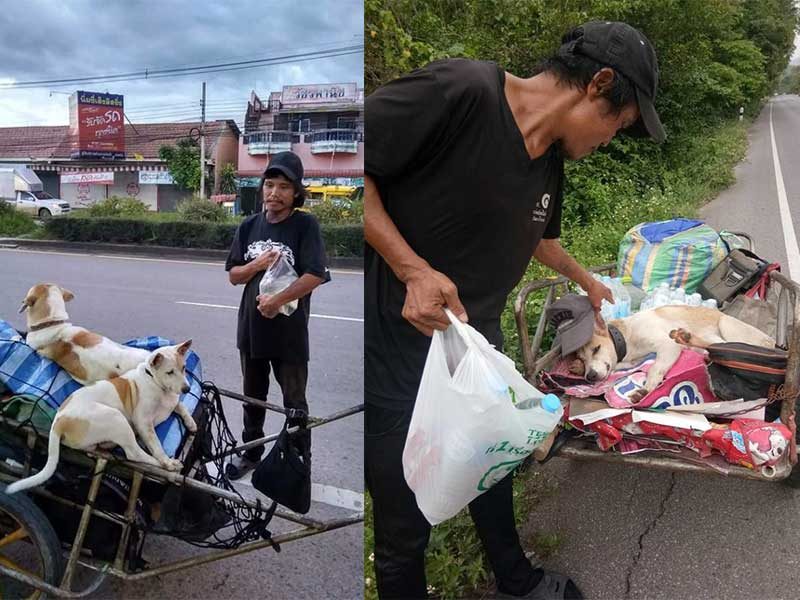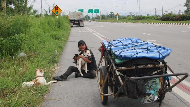 បុរសរូបនេះមានឈ្មោះ សាកចៃ អាយុ ៣៩ឆ្នាំ រស់នៅខេត្តឧដនថានី បានរក្សាពាក្យសន្យាជាមួយមិត្តស្រីថា នាំនាងដើរកម្សាន្ត ពេលនេះក៏នាំមែន តែមិនមែនជាមនុស្សទេ គឺជាផេះរបស់សពមិត្តស្រី។ មិត្តស្រីគាត់បានស្លាប់តាំងពីខែតុលា ឆ្នាំ ២០១៦ ប៉ុន្តែគាត់នៅតែមិនអាចរកប្រាក់សម្រាប់ចាយវាយលើថ្លៃធ្វើដំណើរបាន ទើបសម្រេចចិត្តដើររុញរទេះចាស់មួយ អមជាមួយសុនខ ៣ក្បាល។
