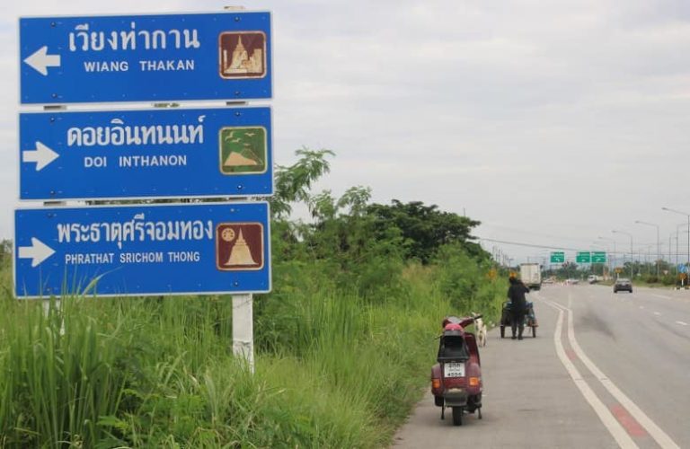 នៅពេលអ្នកយកព័ត៌មានបានជួបគាត់ដោយចៃដន្យ ហើយគាត់កំពុងរុញរទេះនៅខេត្តឈៀងម៉ៃ លោក សាកចៃ បានប្រាប់ថា គាត់ចាប់ផ្ដើមធ្វើដំណើរថ្មើរជើងចេញពីភាគខាងត្បូងខេត្តត្រាំង តាំងពីខែមករា ឆ្នាំ ២០១៧ មកហើយ។ តាមផ្លូវធ្វើដំណើរគាត់បានជួប និងរាប់អានមិត្តភ័ក្ដិ ៣នាក់ ជាសុនខអនាថា ក៏បានចូលរួមដំណើរជាមួយគាត់ដែរ។ ប្រភពដដែលរាយការណ៍ថា គាត់ធ្វើដំណើរតាមផ្លូវយប់ត្រឹមណា គាត់នឹងបោះតង់គេងជាយផ្លូវត្រឹមនោះ។