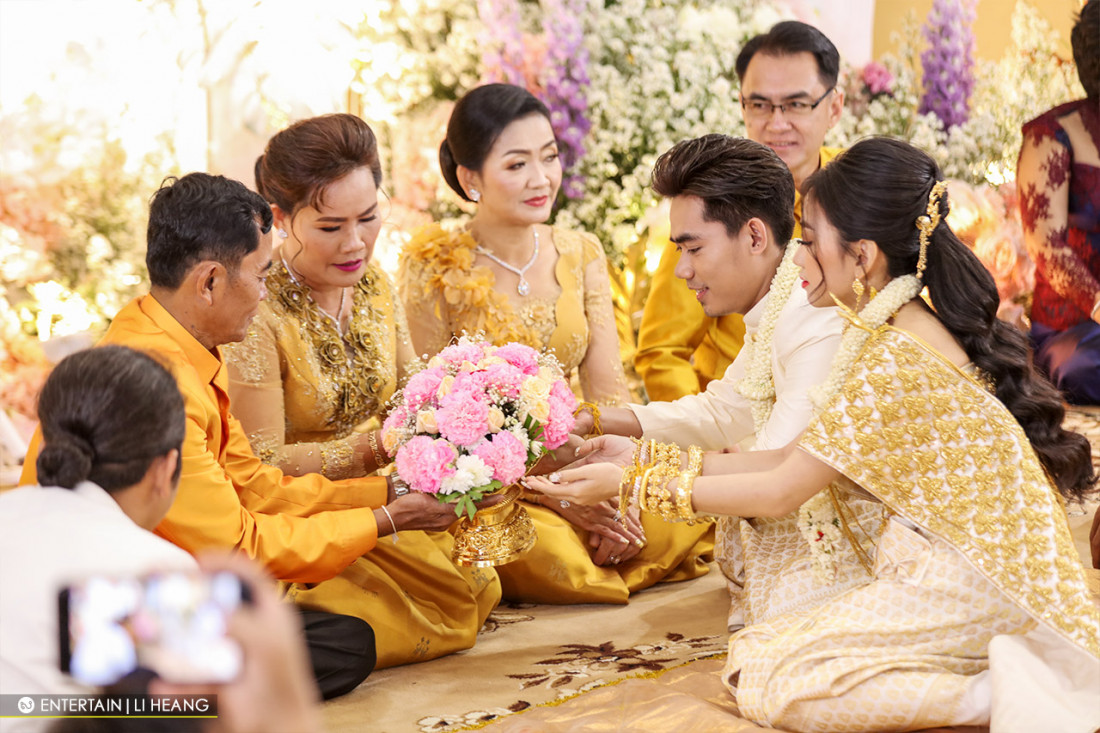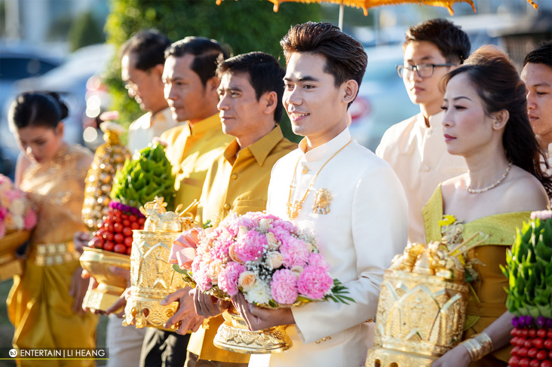 ភ្នំពេញ ៖ ពិធីមង្គលការរនៅព្រឹកនេះ ជាថ្ងៃជ័យសិរីមង្គលរបស់តារាចម្រៀងប្រចាំផលិតកម្មហង្សមាស លោកនី រតនា ដែលកំពុងធ្វើឡើងយ៉ាងអធិកអធម ក្រោយការរៀបចំយ៉ាងល្អ មានភ្ញៀវកិត្តិយស បងប្អូនទាំងសងខាង បូករួមនឹងមិត្តសិល្បៈជាច្រើនទៀតបាន នាំគ្នាចូលរួមអបអរសាទ របស់ លោក នី រតនា និងកញ្ញា ហេង សុវណ្ណភក្ដិណា ពិធីនេះបានរៀបចំឡើងយ៉ាងអធិកអធម រ នៅគេហដ្ឋានខាងស្រី ក្នុងបុរីប៉េងហ៊ួត នៅក្នុងពិធីចងដៃ