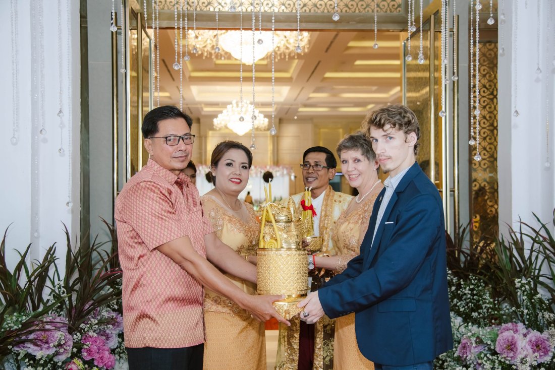 តែអ្វីដែលគួរឲ្យចាប់អារម្មណ៍ និងសរសើរកាន់តែខ្លាំង ទៅកាន់ពិធីជ័យសិរីមង្គលរបស់គូស្វាមីភរិយាមួយគូនេះគឺ កូនកម្លោះដែលជាជនជាតិបរទេស បានជ្រើសរើសយកសម្លៀកបំពាក់បែបបុរាណខ្មែរ នៅក្នុងថ្ងៃដ៏ពិសេសរបស់ខ្លួន នៅក្នុងការរៀបចំខ្លួនយ៉ាងសាកសម ជាមួយនឹងកូនក្រមុំតែម្តង។