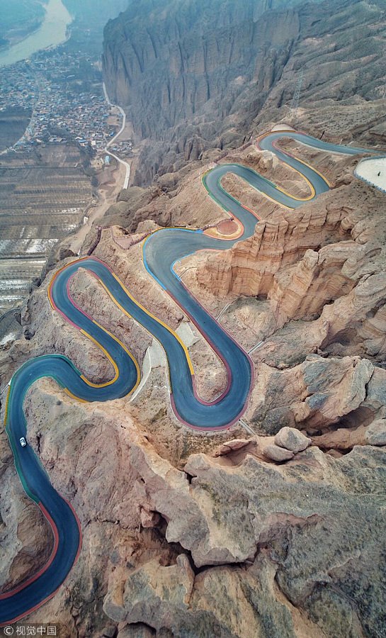 ថ្មីៗនេះទំព័រ China Daily បានថតបង្ហោះនូវរូបភាពដោយប្រើដ្រូន នៅផ្លូវមួយខ្សែរប្រវែង ២៣០០ ម៉ែត្រ នៅតំបន់ Yellow River Stone Forest in Jingtai county, Gansu province, NW China