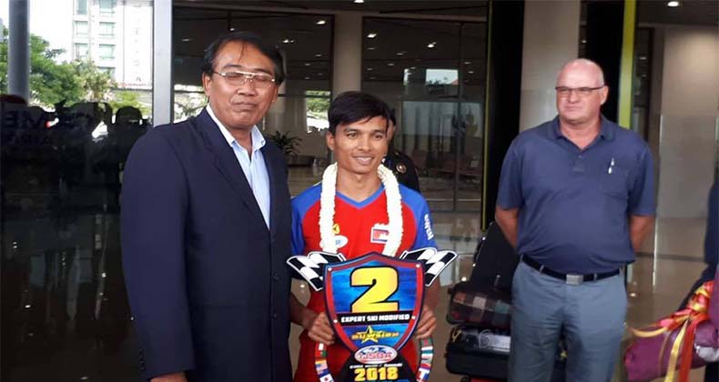 (ភ្នំពេញ) នៅថ្ងៃទី១២កញ្ញាកីឡាករឆ្នើមរូបនេះបានមកដល់កម្ពុជាក្រោមការស្វាគមន៍ពីសំនាក់លោកណុះ ស្លេះរដ្ឋលេខាធិការក្រសួងអប់រំយុវជន និង កីឡានិងជាប្រធានសហព័ន្ធកីឡាម៉ូតូទឹកកម្ពុជា លោកប៊ូ ជុំសេរីអនុរដ្ឋលេខាធិការ និងលោកប៉ុន សុខប្រធានមជ្ឈមណ្ឌលជាតិហ្វឹកហ្វឺនកីឡា ។