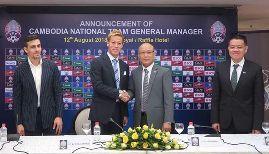 គួរបញ្ជាក់ថា Keisuke Honda ត្រូវបានឯកឧត្តម សៅ សុខា ប្រធានសហព័ន្ធកីឡាបាល់ទាត់កម្ពុជា ប្រកាសតែងតាំងជាអ្នកចាត់ការទូទៅក្រុមជម្រើសជាតិ អមដោយតំណែងគ្រូបង្គោលផងដែរ ក្នុងកិច្ចសន្យារយៈពេល ២ឆ្នាំ កាលពីម្សិលមិញ តែអ្វីដែលឲ្យអ្នកគាំទ្រភ្ញាក់ផ្អើល គឺលោក Honda មកកម្ពុជា ដើម្បីចូលរួមអភិវឌ្ឍន៍វិស័យបាល់ទាត់កម្ពុជាដោយស្ម័គ្រចិត្ត ពុំមានការយកប្រាក់ខែនោះទេ គ្រាដែលសហព័ន្ធបានត្រៀមនូវរាល់ការចំណាយ ការធ្វើដំណើរ ការស្នាក់នៅ និងធ្វើការងារក្នុងស្រុកដល់រូបគេ ទៅតាមនិយាមសហព័ន្ធអន្ដរជាតិ ៕ប្រភពCAMSPORT