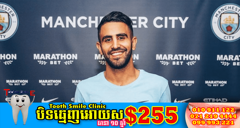ក្រុមមេឃខៀវ Manchester City បានបំបែកកំណត់ត្រាក្លិបក្នុងការចុះហត្ថលេខាទិញខ្សែបម្រើស្លាប Riyad Mahrez ពីក្រុមកញ្ជ្រោងខៀវ Leicester City ជាមួយនឹងតម្លៃខ្លួនផ្ទេរ ៦០ លានផោន ខណៈដែលកីឡាករវ័យ ២៧ ឆ្នាំរូបនេះបានចុះកុងត្រារយៈពេល ៥ ឆ្នាំជាមួយកីឡដ្ឋាន Etihad របស់ Man City ។