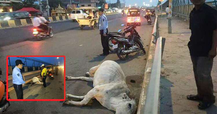 មេគោមួយក្បាល ម្ចាស់លែងអោយដេីរពាស់វាលពាស់កាលតាមផ្លូវសាធារណះត្រូវរថយន្តហាយឡែនឌ័រមួយគ្រឿងបើកបុក បណ្តាលឲ្យងាប់ កាលពីវេលាម៉ោង១និង៥០នាទីរំលងអធ្រាត្រ ចូលថ្ងៃទី២១ ខែមករា ឆ្នាំ២០១៩ ស្ថិតនៅតាមផ្លូវសហព័ន្ធរុស្សី ភូមិព្រៃជីសាក់ សង្កាត់ចោមចៅ៣ ខណ្ឌពោធិសែនជ័យ រថយន្តបន្តដំណើរទៅបាត់។