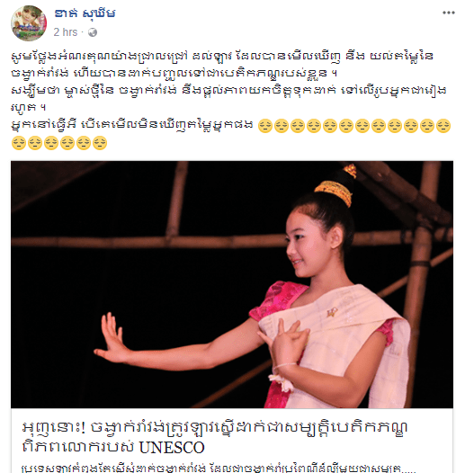 ការលើកឡើងរបស់មន្រ្ដីជាន់ខ្ពស់ក្រសួងវប្បធម៌ និងវិចិត្រសិល្បៈនេះគឺធ្វើឡើង បន្ទាប់ពីមាន ការផ្សព្វផ្សាយនៅលើបណ្តាញសង្គមហ្វេសប៊ុកបានបំផុសព័ត៌មានដែលបង្កការព្រួយបារម្ភ ខ្លាចប្រទេសថៃចុះបញ្ជីល្ខោនខោលរបស់ខ្មែរធ្វើជារបស់ខ្លួន។