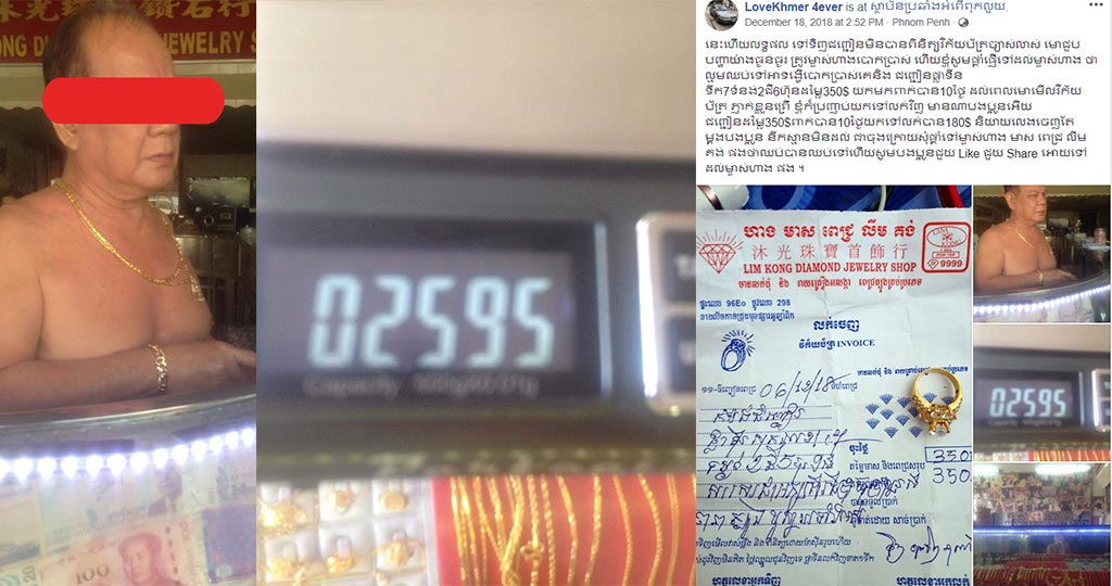 វាពិតជារឿងមួយដែលគួរឲ្យភ្ញាក់ផ្អើលខ្លាំងណាស់ បន្ទាប់ពីទៅទិញចិញ្ចៀនផ្លាទីនតម្លៃ ៣៥០ដុល្លារ ពីហាង មាស ពេជ្រ លីម គង់ ហើយពាក់បាន១០ថ្ងៃ លក់វិញបាន ១៨០ដុល្លារ ធ្វើឲ្យអ្នកទិញរូបនេះមិនអស់ចិត្ត យល់ថាត្រូវម្ចាស់ហាងបោកប្រាស់ ក៏បានបង្ហោះវិក្កយបត្រ ឈ្មោះហាង និងមុខមាត់ម្ចាស់ហាងលើហ្វេសប៊ុក និងរាប់រាប់យ៉ាងដូច្នេះថា៖