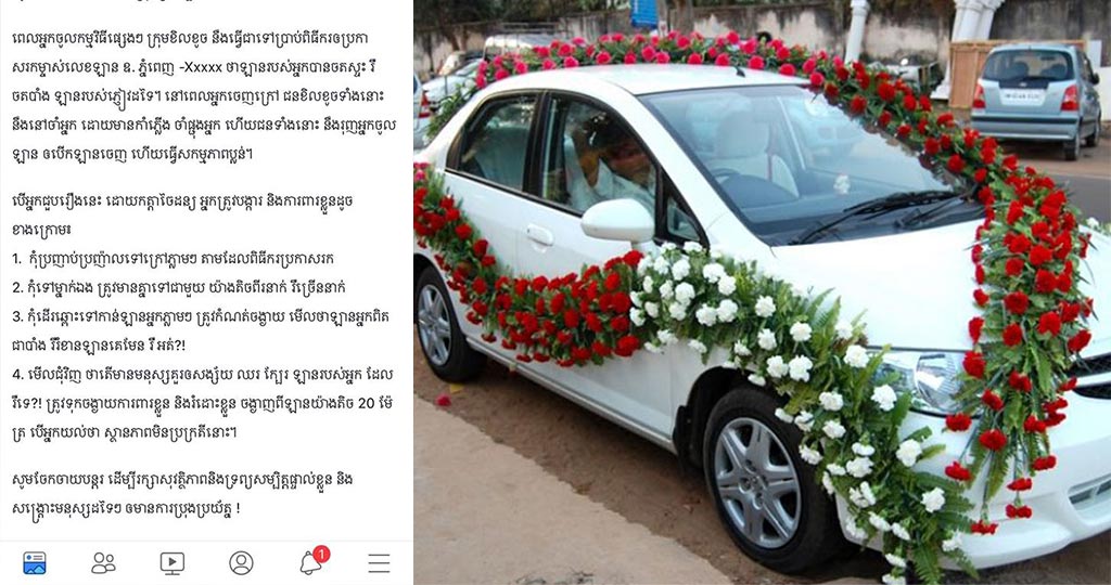 នៅ​ពេល​ថ្មីៗ​នេះ​មាន​គណនី​ហ្វេសប៊ុក​នារី​ម្នាក់​ឈ្មោះ Srey Toch Yun បាន​សរសេរ​រៀប​រាប់​ចែក​រំលែក​បទ​ពិសោធន៍​ដែល​ជន​ខិល​ខូច​មួយ​ចំនួន​មាន​បំណង​ចង់​​លួច​ប្លន់​​ទ្រព្យ​សម្បត្តិ​របស់​យើង។ ក្នុង​សារ​នោះ​នាង​បាន​សរសេរ​រៀប​រាប់​ថា «​ពេល​អ្នក​ចូល​រួម​កម្មវិធី​ផ្សេងៗ​ក្រុម​ខិល​ខូច​នឹង​ធ្វើ​ទៅ​ប្រាប់​ពិធី​ករ​ឲ្យ​ប្រកាស​រក​ម្ចាស់​លេខ​ឡាន ឧទាហរណ៍​ភ្នំ​ពេញ-XXXX ថា​ឡាន​របស់​អ្នក​បាន​ចត​ស្ទះ​ ឬ​ចត​បាំង​ឡាន​របស់​ភ្ញៀវ​ដទៃ។
