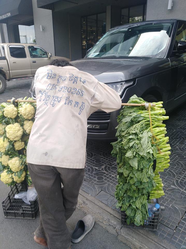 ភ្នំពេញ : ខុសប្លែក​ពី​អ្នក​លក់​បន្លែ​តាម​ផ្សារ​មាន​តូប កញ្ច្រែង កង់ ម៉ូតូ រ៉ឺម៉ក ខ្លះ​មាន​ទាំង​រថយន្ត​ដឹកជញ្ជូន​មើម​ស្លឹក​ជាច្រើន​មុខ​រូបភាព​បុរស​ម្នាក់​រែក​អំរែក​បន្លែ​មាន​តែ​ខាត់ណា និង​ខ្ញី ដើរ​លក់​នៅ​តាម​ដងផ្លូវ ថ្មីៗ​នេះ​បាន​ថ្ពក់​ចិត្ត​អាណិតអាសូរ​ពី​អ្នកប្រើប្រាស់​បណ្ដាញ​សង្គម​យ៉ាង​ក្រាស់ក្រែល​។ អ្វី​ដែល​រឹតតែ​ធ្វើឲ្យ​បុរស​រែក​អំ​រែក​ដើរ​លក់​បន្លែ​នោះ​ត្រូវ​បាន​ចែករំលែក​ពេញ​បណ្ដាញ​សង្គម​គឺ​នៅលើ​អាវ​ពណ៌​គគីរ​ស្ទើរ​ប្រផេះ ប្រឡាក់​ដី​ពពាល​នោះ​មាន​សំណេរ​ពាក្យពេចន៍​ដ៏ចាក់ដោត​ជាប់​នឹង​ខ្នង​អាវ​ថា «​មិន​តូច​ចិត្ត​ទេ ០១៥ ៩២០- ២៥៥ ជីវិត​ត្រូវ​តែ​តស៊ូ​»​។