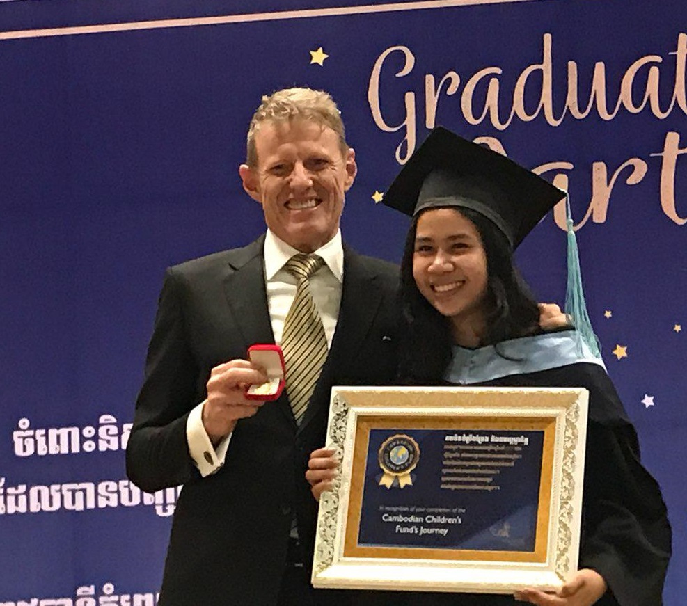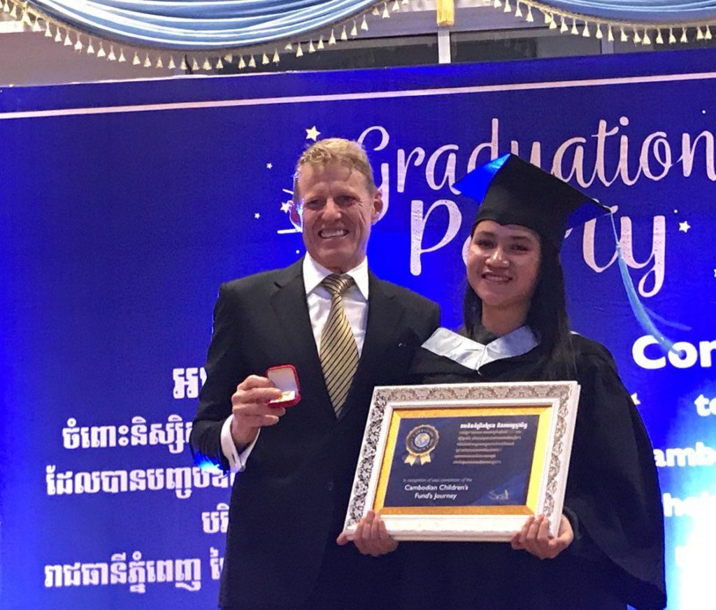 ​ដើម្បី​លើកទឹកចិត្ត​ដល់​និស្សិត​បញ្ចប់​ការសិក្សា អង្គការ​មូលនិធិ​កុមារ​កម្ពុជា​កាលពី​ល្ងាច​ថ្ងៃទី ២០ ខែធ្នូ ឆ្នាំ​២០១៨​បានរៀបចំ​ពិធី​ផ្តល់​កិត្តិយស​និង​ផ្តល់​លិខិត​សរសើរ​ដល់​កុមារ​ចំនួន​៣០​នាក់​ដែល​ពួកគេ​បាន​តស៊ូ​រហូត​បញ្ចប់​ការសិក្សា​ពី​សាកលវិទ្យាល័យ​និង​ទទួលបាន​សញ្ញាបត្រ​លើ​ជំនាញ​របស់​ពួកគេ​រៀងៗ​ខ្លូន​។​ ក្នុងចំណោម​និស្សិត​ទាំងនេះ​មាន​និស្សិត​មួយចំនួន​ជា​កុមារ​ដែល​ត្រូវបាន​រកឃើញ​ដំបូង​គេ​ពេល​កំពុងធ្វើការ​និង​រស់នៅ​នៅ​កន្លែង​ចាក់សំរាម​កាលពី​ឆ្នាំ ២០០៤ និង ២០០៥​។​ក្នុងចំណោម​ពួកគេ មាន​កញ្ញា រួស ស្រី​និ​ច អាយុ ២៤ ឆ្នាំ ដែល​នៅ​កន្លែង​ចាក់សំរាម​កាលពី​អាយុ ៨ ឆ្នាំ នៅពេល​ត្រូវបាន​លោក Scott Neeson ដែលជា​ស្ថាបនិក​របស់​អង្គការ CCF រកឃើញ​។