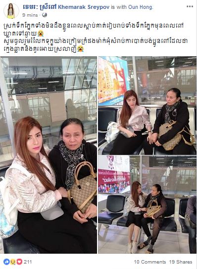 ភ្នំពេញ៖ ខណៈពេលនេះសាកសពរបស់តារាចម្រៀងកញ្ញាខេមរៈ ស្រីពៅ កំពុងចេញដំណើរមកកាន់ប្រទេសកម្ពុជាហើយ។ ម្តាយឪពុកក៏ដូចជាបងប្រុសនាងបានធ្វើដំណើរទៅយកដោយក្តីក្រៀមក្រំបំផុតនៅឯប្រទេសឥណ្ឌា។